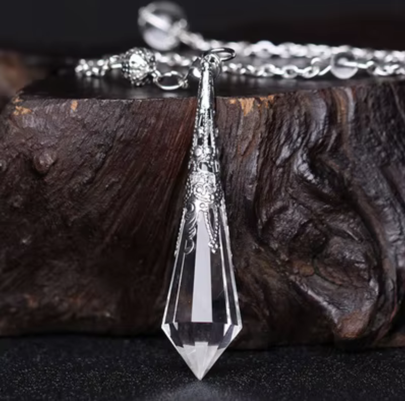 Som ett valbart komplement till kursen finns en handskuren pendel i naturlig bergkristall. Ett enkelt och vackert redskap för dig som vill ha något konkret att arbeta med under kursens övningar.